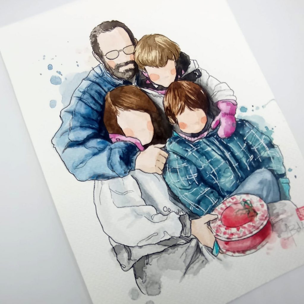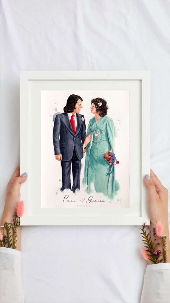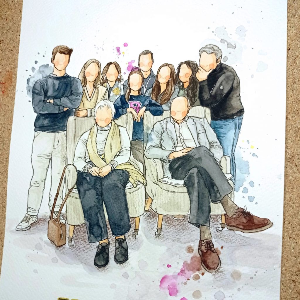 «Encargué un retrato en acuarela como regalo sorpresa por las bodas de oro de mis padres. Partimos de una foto antigua y descolorida, y Anna logró darle vida con una sensibilidad increíble. Nos emocionó a todos. Muy recomendable.»